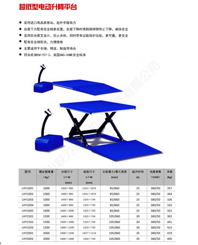 超低型升降平台参数列表