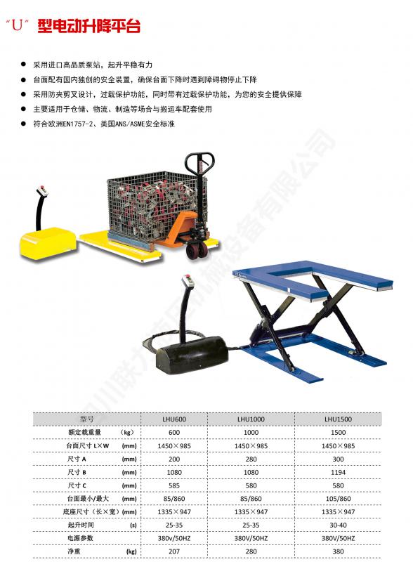 超低型升降平台(U型)参数列表